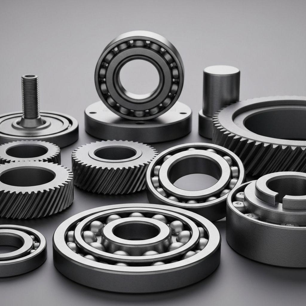 Wide range of industrial components and hardware including fasteners, bearings, seals, and custom parts.